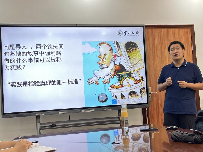 支部组织生活结束后,进入集体备课会环节。助理教授李亿以《实践的本质》为主题,就实践的直接现实性、社会历史性等问题进行教学试讲。他以合理的内容布局、清晰的讲解脉络,展现扎实的学术功底和良好的理论素养。与会教师就此予以肯定,并就其中存在问题提出建议。